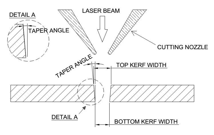 When a laser cutter cuts through a sheet of material, it burns away part of it. You are left with a piece that is a little bit smaller than you designed. That small amount of material lost is the width of the laser beam and is know as the kerf.